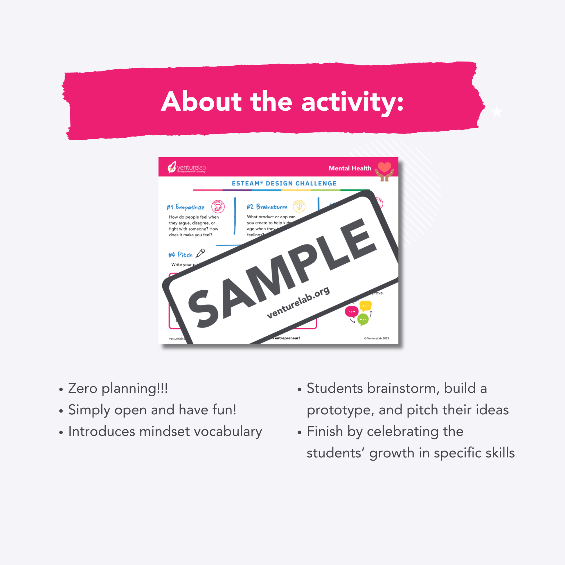 - 1 ready-to-go entrepreneurial design challenge activity on the topic of mental health